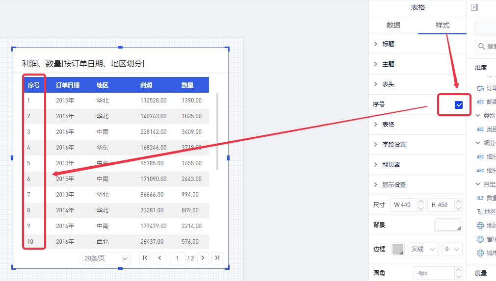 (3)表格支持在首列显示序号,设置方式如图所示;