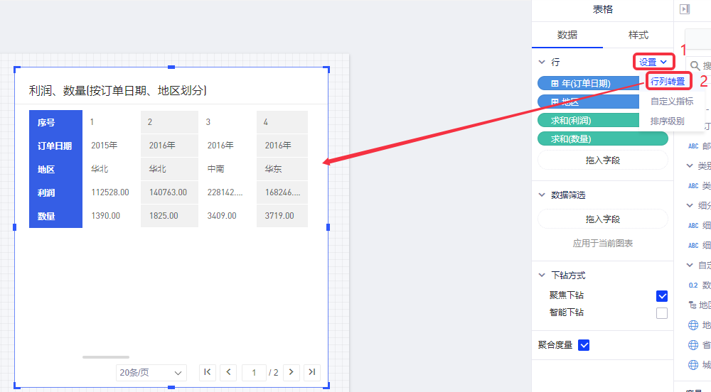 (7)表格图支持转置(即行列转换),表格转置后,导出推送等保持转置后格式;
