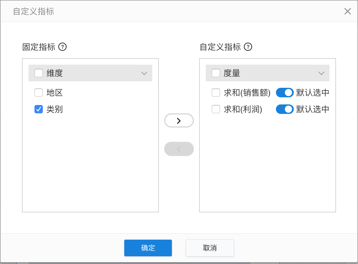 - 固定指标指的是固定于表格的指标,阅览报告时无法修改固定指标的显示状态;