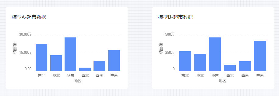 下图中有2个图表,分别来自两个不同的数据模型,现在用模型A的地区字段做列表筛选器,希望能对这2个图表一起生效。