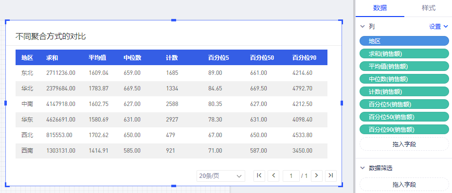 下图展示了针对“销售额”度量,不同聚合方式之间的对比。