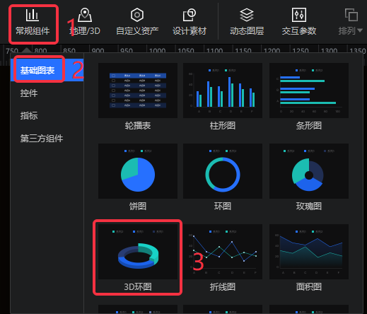- 动画效果:设置3D环图是否开启动画,以及自动轮播、停留时长、轮播联动。