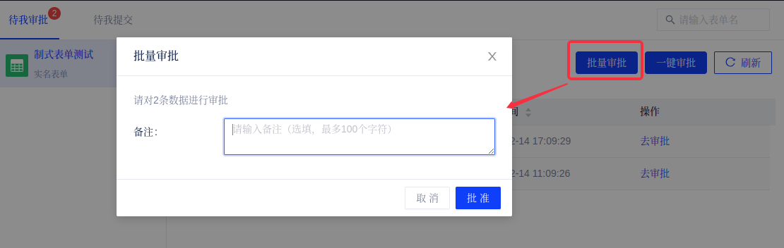 若选择“一键审批”,可以对当前“全部”数据进行批准(同意)。
