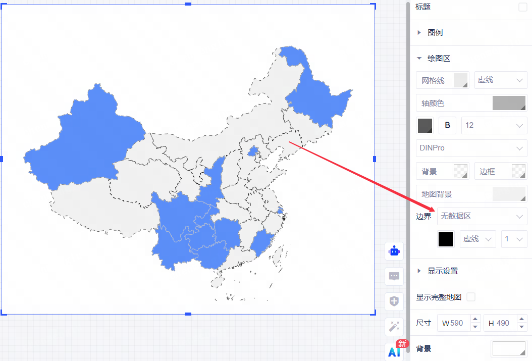 • 绘图区边界设置可选择有数据区/无数据区,切换选择后,控制的地图边界范围跟随变化