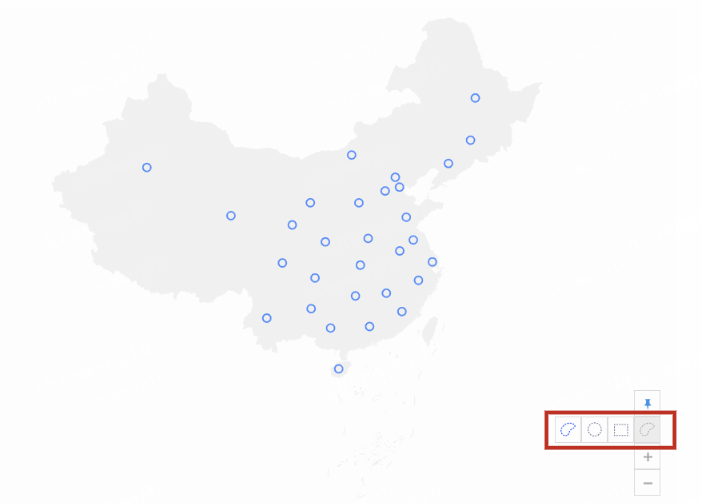 右键点击地图右下侧第二个图标,可以展开三个选项,分别是套索圈选、圆形圈选、矩形圈选