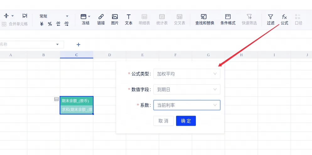 4、工具栏新增加权平均:工具栏新增加权平均公式,提高公式和数据配置效率