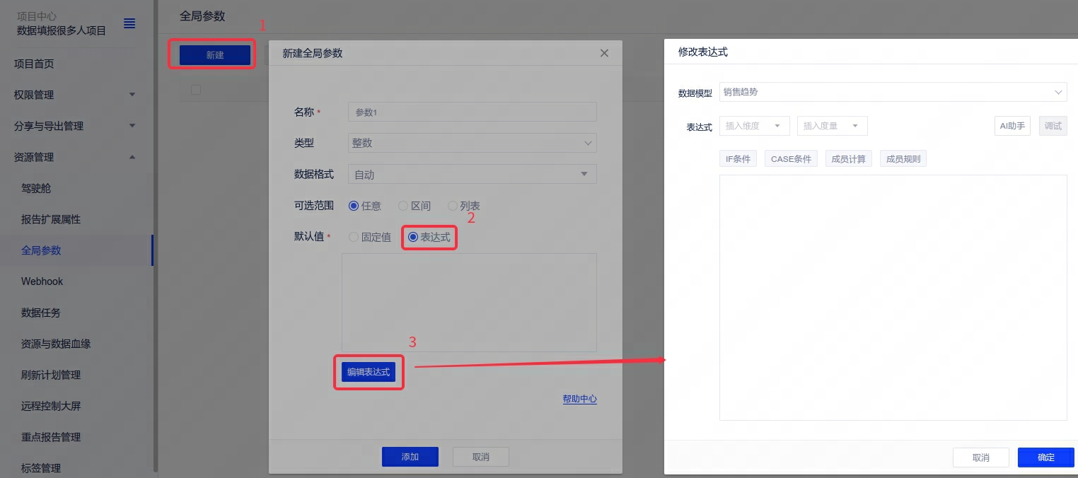 3、参数默认值:默认值支持编辑表达式