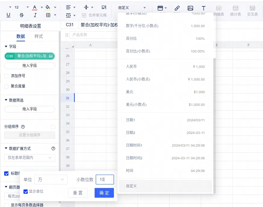 5、数据格式增强:万和亿支持1-10位小数