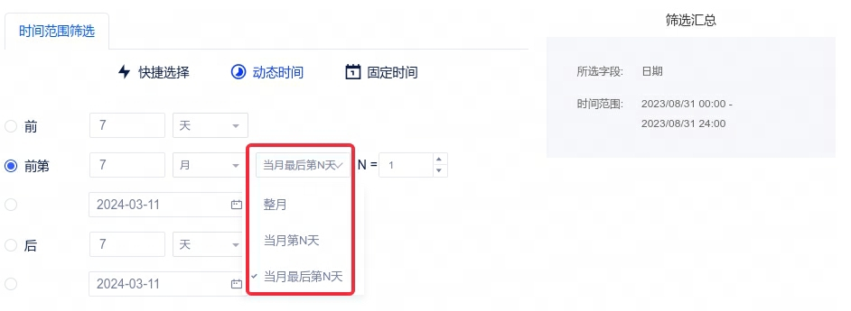 2、编辑态日期筛选:新增周期内最后N填选项,方便选择月底,季度底等数据选项