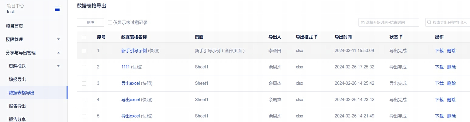 6、报表导出:导出时新增快照选项,在快照选项下导出数据将会持久保存