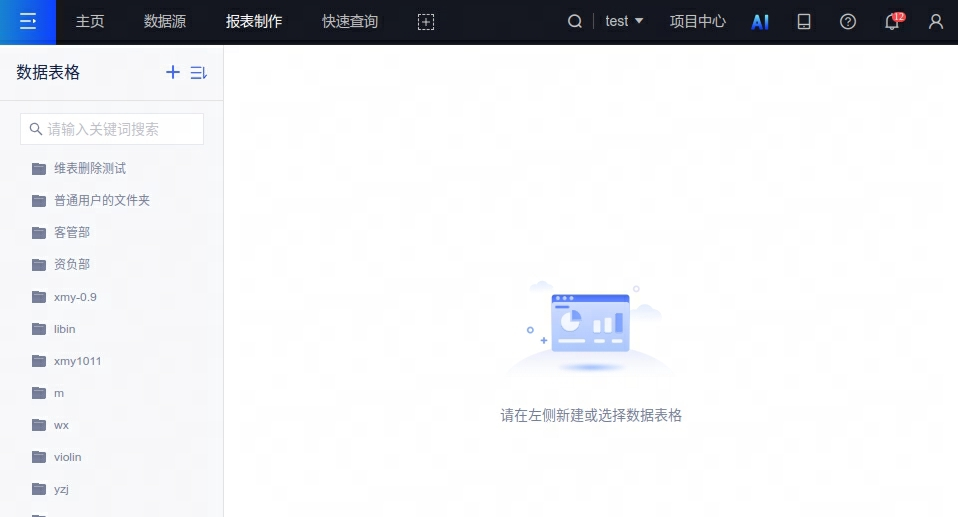7、新增空白页:用户进入数据表格时,增加空白页显示(PS:原有模式下,首次进入数据表格系统将会自动选择一个表格加载,带来性能消耗)