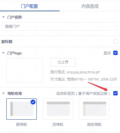 1、【新增】侧导航布局下支持动态标签页,需事先勾选