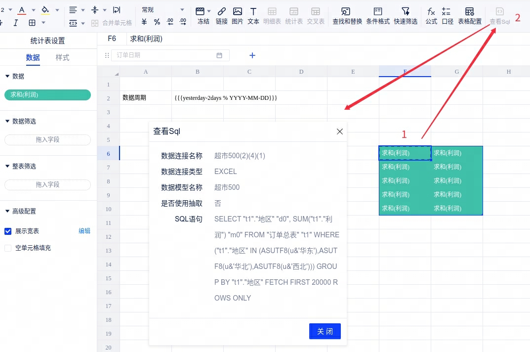 1、【新增】用户在编辑状态下支持查看表或单元格的sql,选中目标单元格,若单元格中引用的模型子段则顶部菜单栏查看sql入口会点亮,点击即可查看