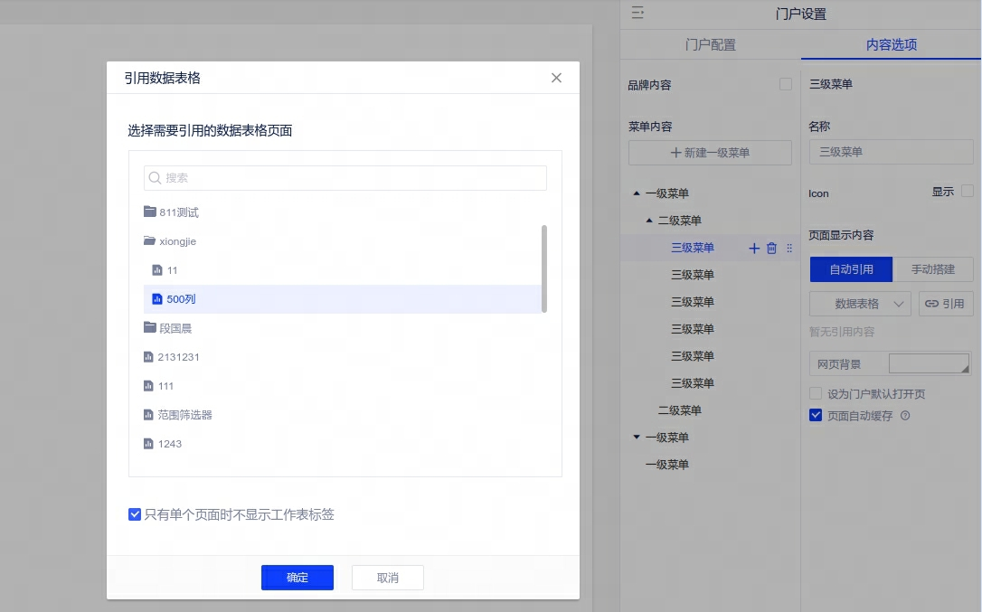 2、【新增】引用数据表格模块时,若表格只有单个页面时可不显示工作表标签
