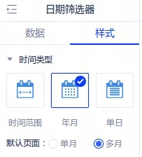 1、【筛选器】日期筛选器默认配置兼容“年月-多月”