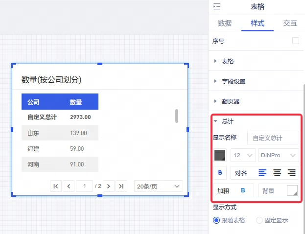 2、【控件】表格总计支持用户修改名称