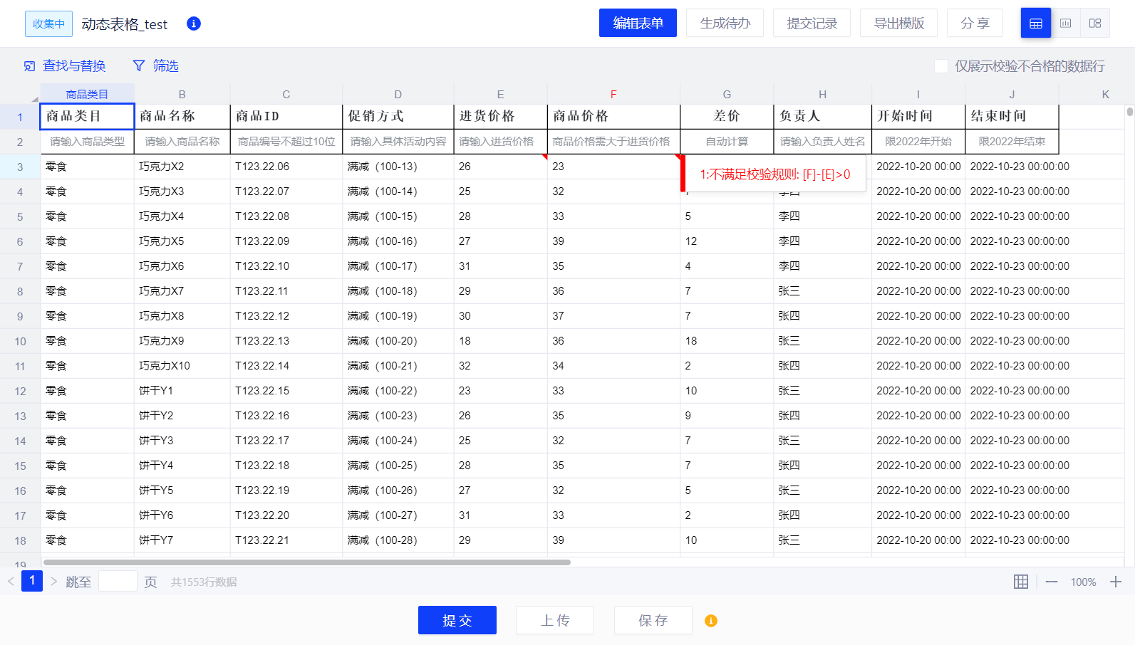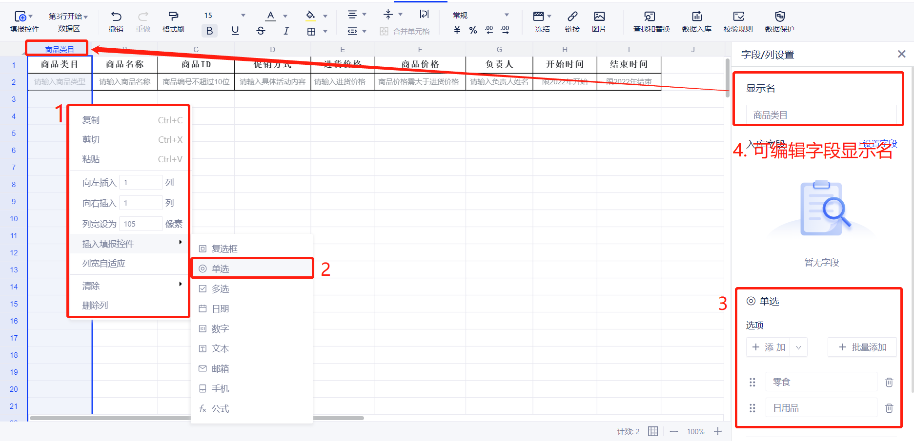 (2)用户可以通过上传Excel生成填报模版