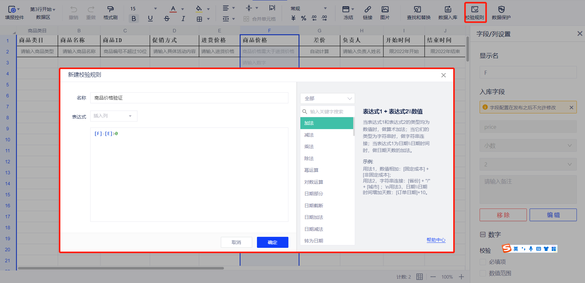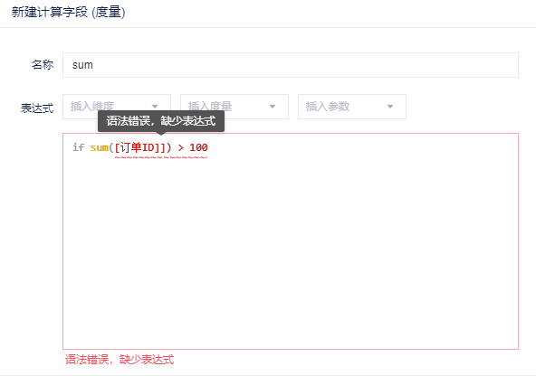 计算字段经常涉及复杂的公式计算,用户在使用时比较容易出错。为此我们做了以下优化: