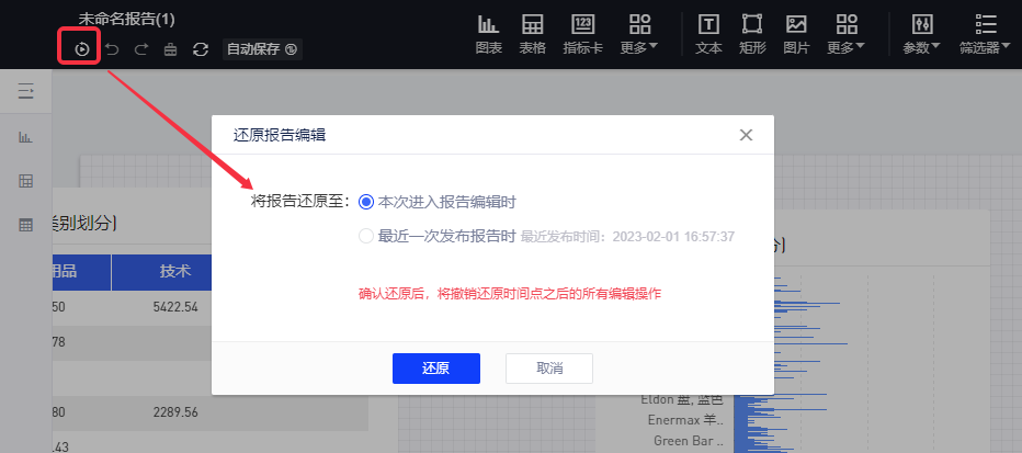 同时支持将报告还原至最近发布版本