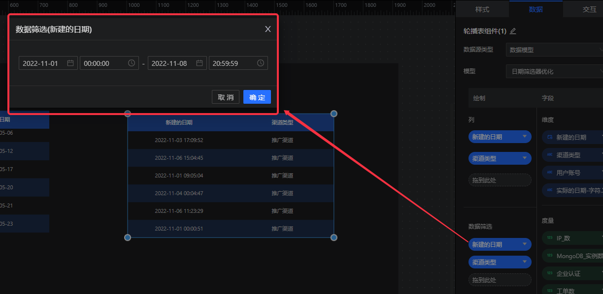 维度字段(日期类型)支持日期筛选