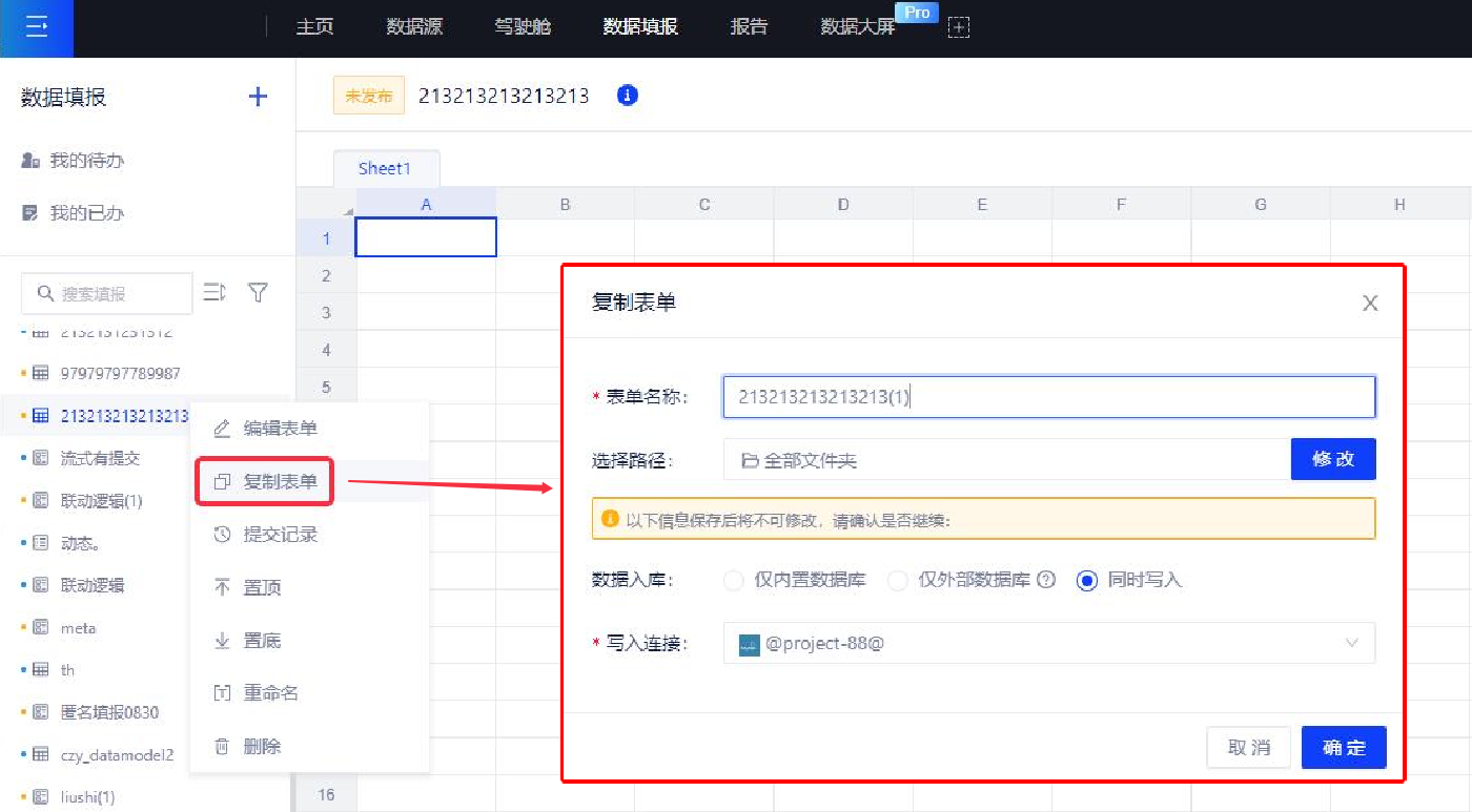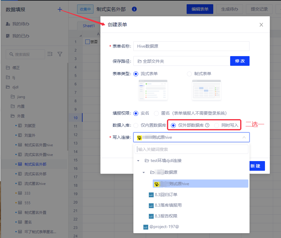 (1)MySQL和Hive数据源:新增填报选项,开启该选项的数据源支持填报写入(需给平台开放数据库操作权限)