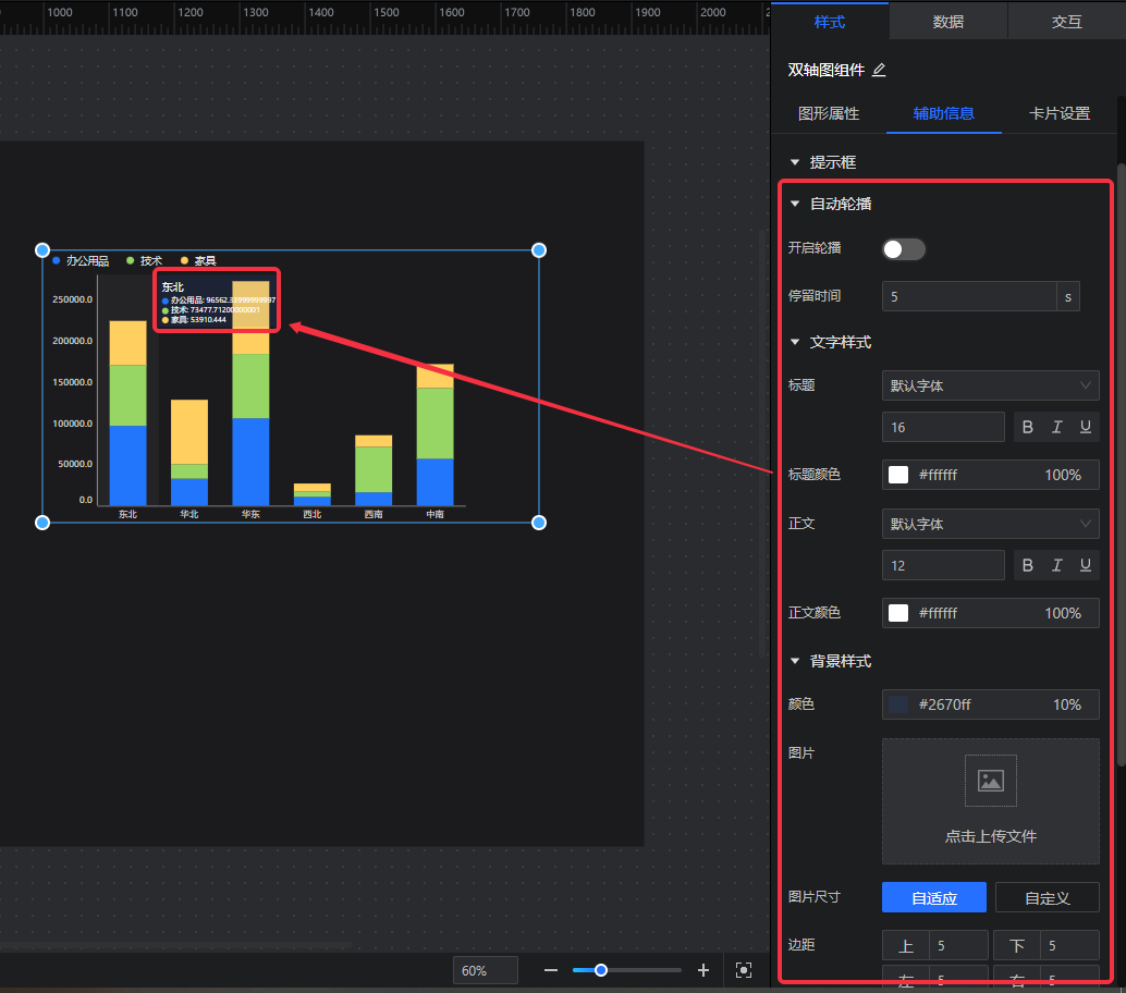 支持设置组件的提示框自动轮播,支持自定义提示框样式