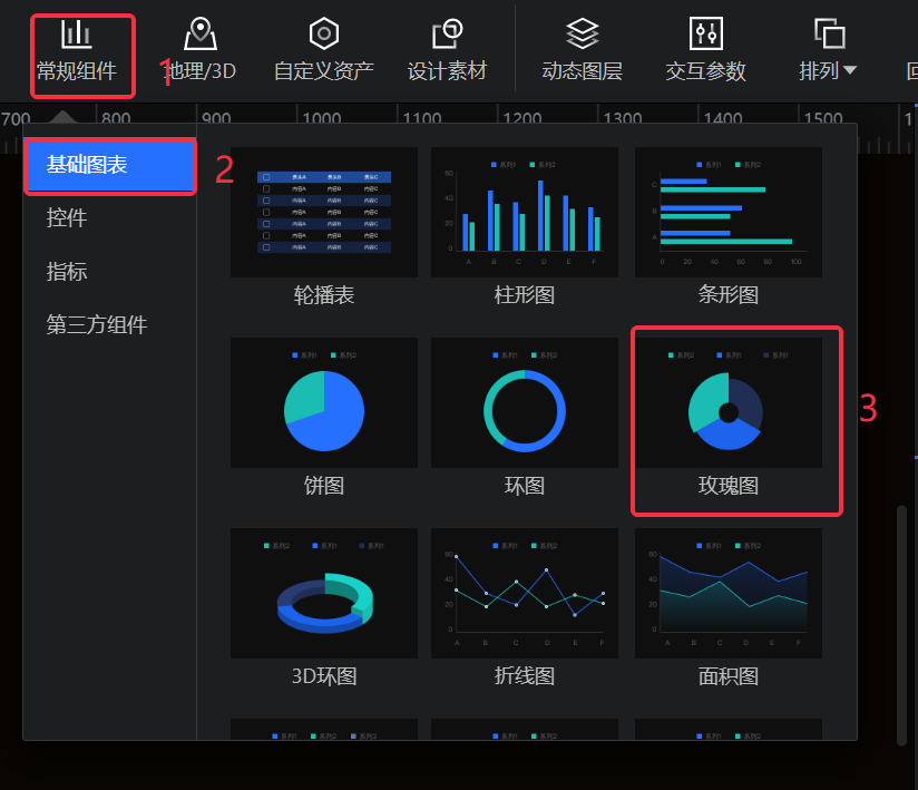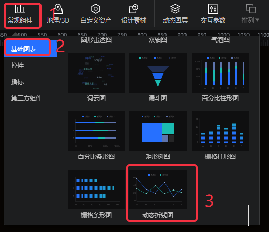 添加3D地图,可以添加标记点、飞线、柱状体子组件
