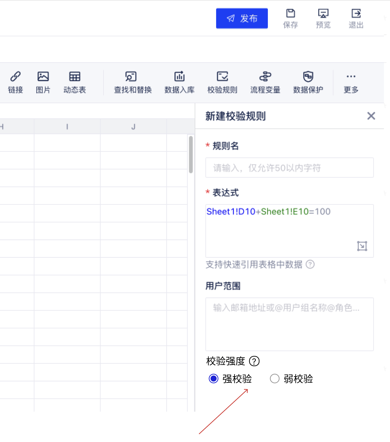 - 强校验:数据未通过校验条件的情况下,用户无法提交表单
