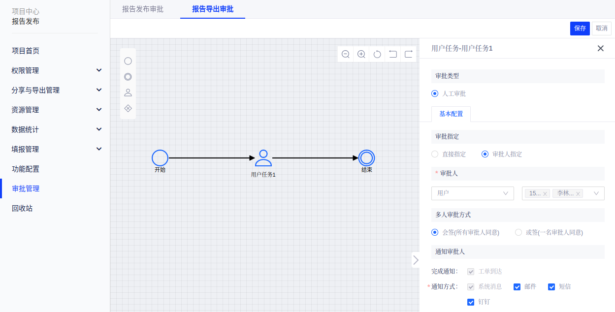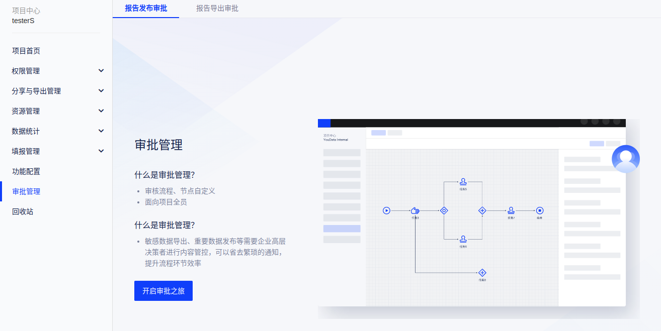 新增流程审批管理,支持设置报告导出审批和报告发布审批