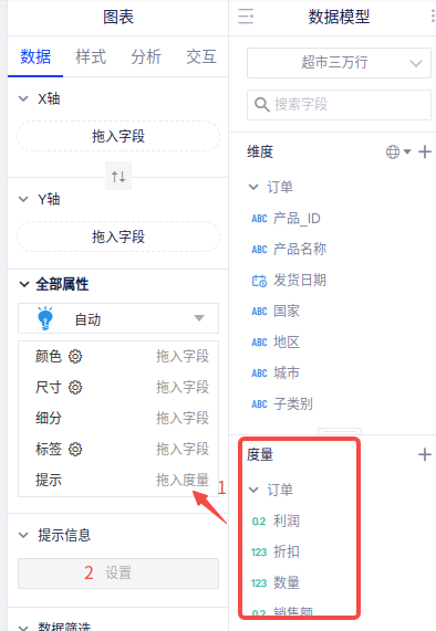 (1)提示信息:图表新增提示信息及其配置,支持拖入图表视图外的多个度量字段