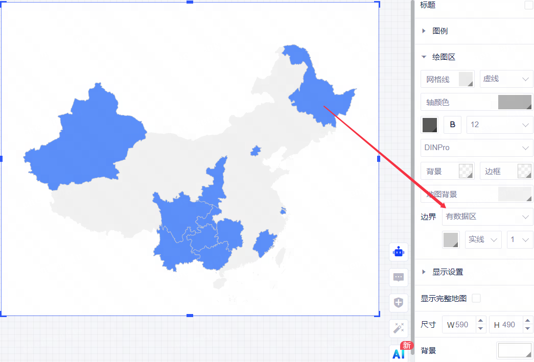 • 绘图区边界设置可选择有数据区/无数据区,切换选择后,控制的地图边界范围跟随变化