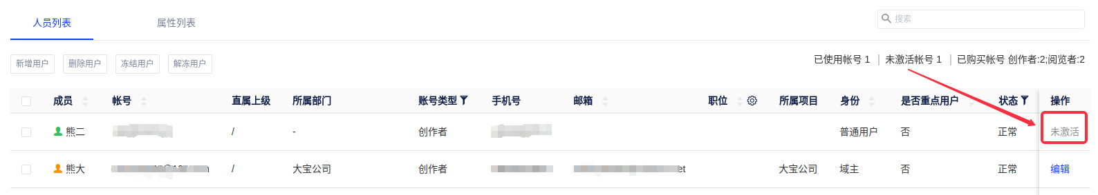 完成人员录入后,在人员列表的界面,会提示该用户“未激活”