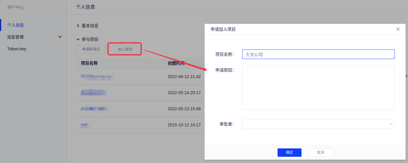第四步:用户在用户中心申请加入项目。