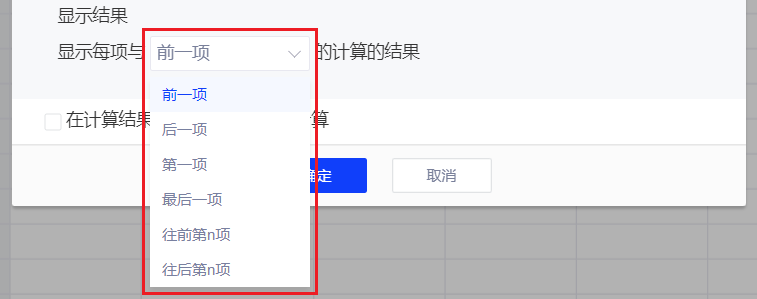 计算类型包括差异、百分比、差异百分比、总额百分比、累计和、移动计算以及排名。