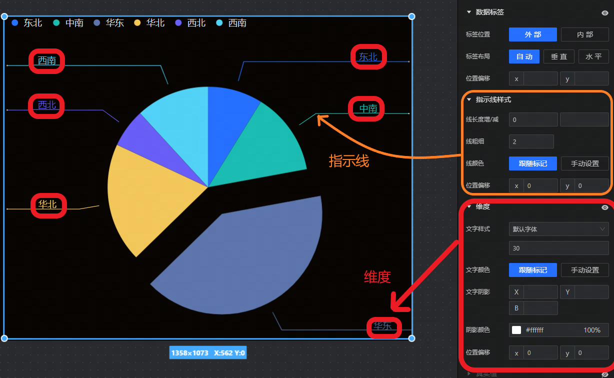 数据标签:设置饼图上是否要展示数据标签,以及标签的文字样式。