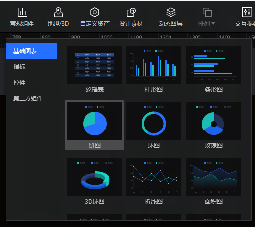 - 饼图:设置饼图的内半径、颜色、圆角等样式。