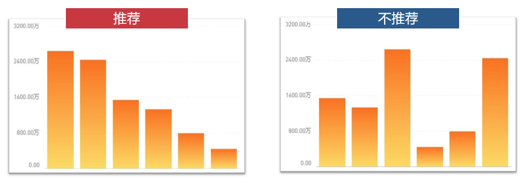 (2)数据排序要合理,按字母循序或柱子高低排序分类。