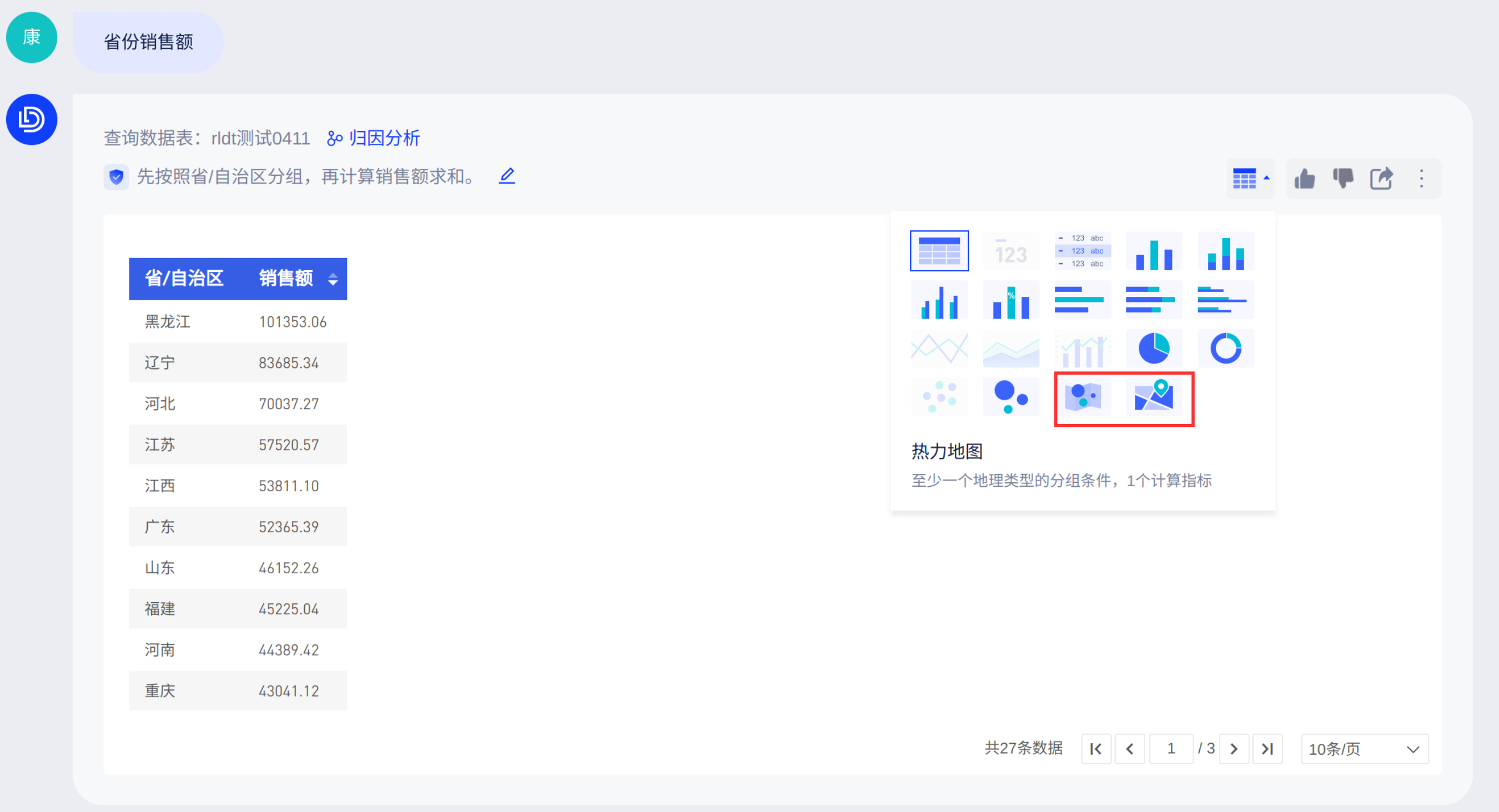 配置地理字段后,热力地图和标记地图类别可选: