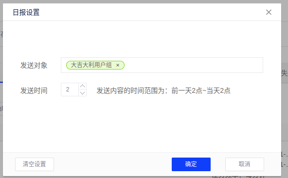 发送日报:可推送记录,选择发送日报,添加发送对象,发送时间(发送内容的范围为:前一天0点~当天0点)0至24内,将时间内的抽取记录发送给设置的接收人;