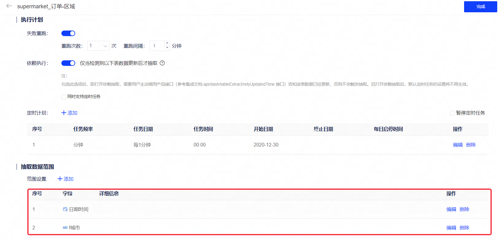②支持用户一次配置多个字段,用户完成配置后,执行抽取任务。