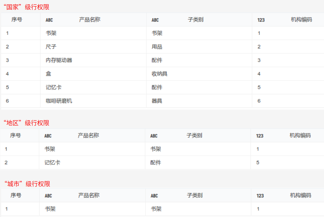 本产品支持对角色设置数据访问权限,权限控制粒度可达到行和列级别。接下来将通过具体的示例来介绍如何设置行级权限及列级权限。