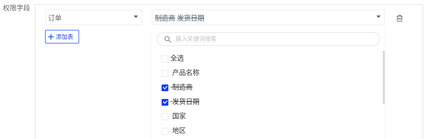 (2)选择要设置列权限的字段,勾选的字段为没有查看权限的字段;