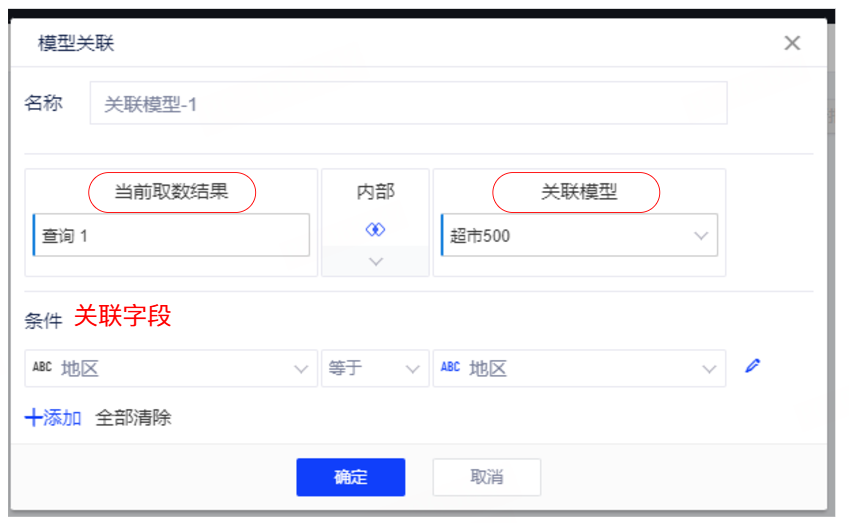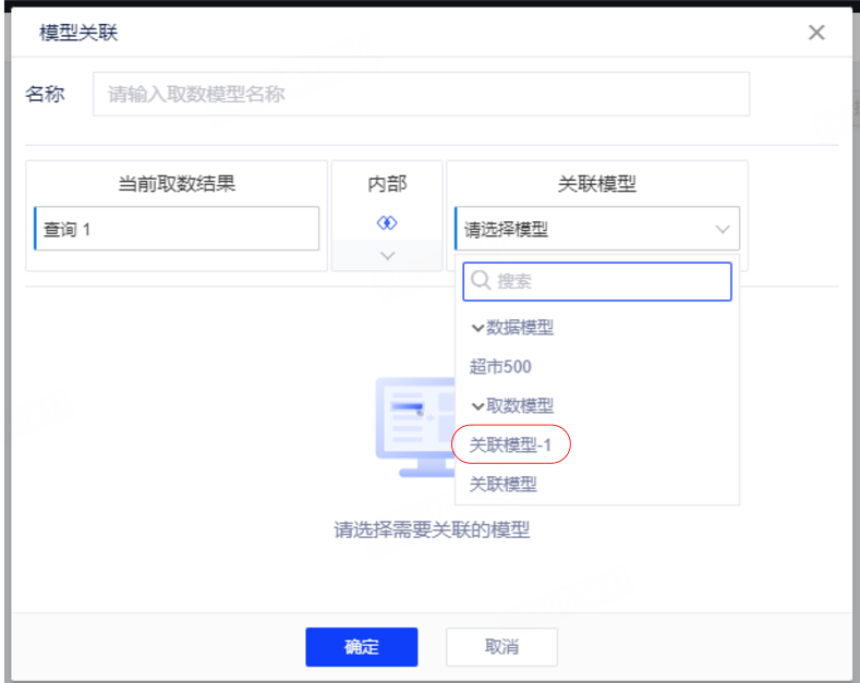 取数表和模型表作关联得到新的关联模型表,保存为新的关联模型。