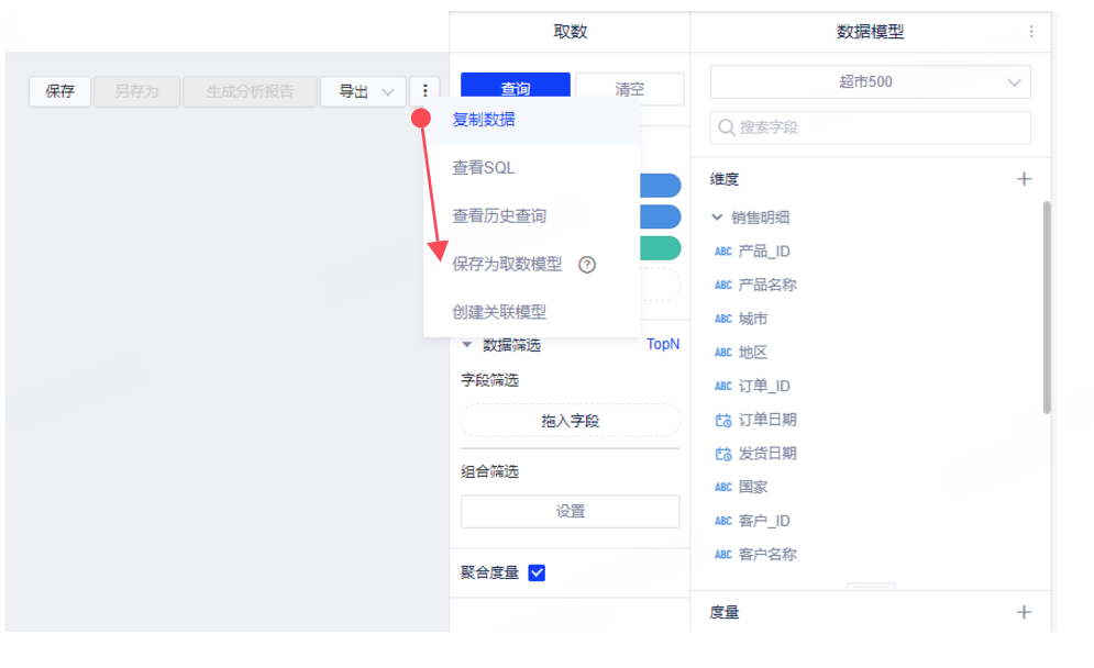 (4)保存为取数模型