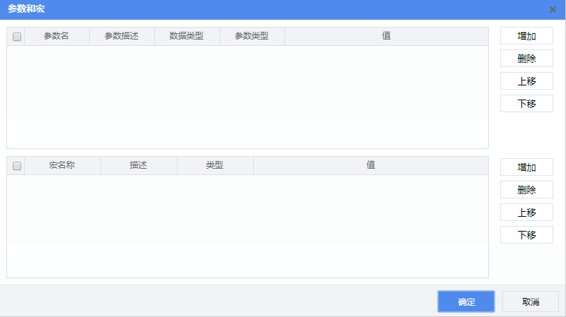 在此页面,可以添加、删除参数和宏,点击【上移】、【下移】按钮还可以移动参数或者宏的位置。