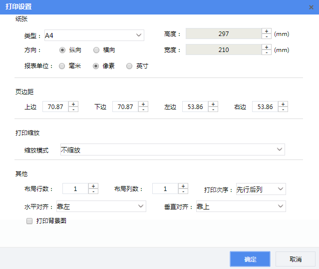 可设置报表的布局行列数、打印次序、水平对齐与垂直对齐。