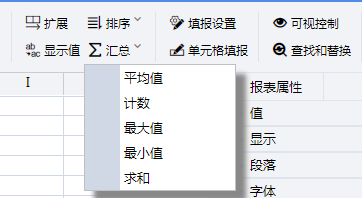本菜单项的功能是对可扩展单元格的数据进行求和、平均、最大、最小和计数。
