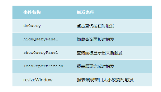 报表展现页面中JS事件调用方法及详细说明如下: