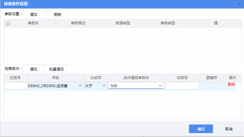 SQL检索数据集可通过条件检索设置实现,如下图: