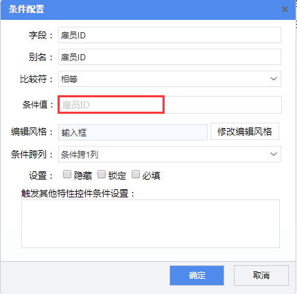 条件值是通用查询生成查询面板时带入的初始默认值,为空时初始状态下该条件不起作用。
